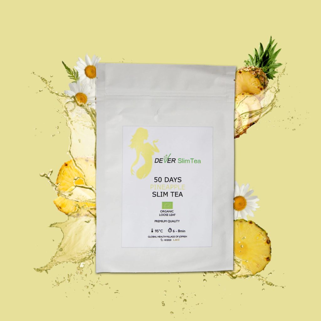 Ingredienti: Tè Verde (50%) , Ananas disidratato (15%), Cannella corteccia (15%), Zenzero secco (15%), Camomilla (5%)